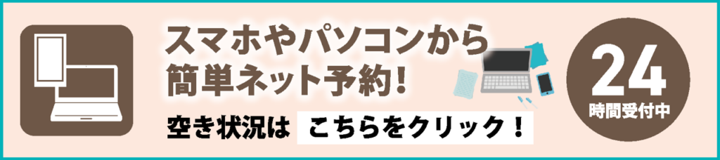 ご予約方法は下記の4種類がございますが、当日予約など急ぎの場合はお電話にてご連絡をお願いいたします。