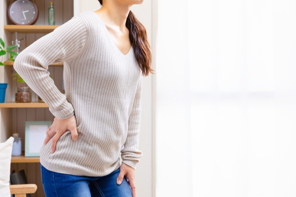 猫背で骨盤が後ろに倒れている、反り腰で腰椎が圧迫され続けている、長時間の座位でお尻や足の筋肉が硬くなる、立つときに片足に重心をかけるクセがある——こうした姿勢はすべて坐骨神経の通り道へ負担をかける原因になります。